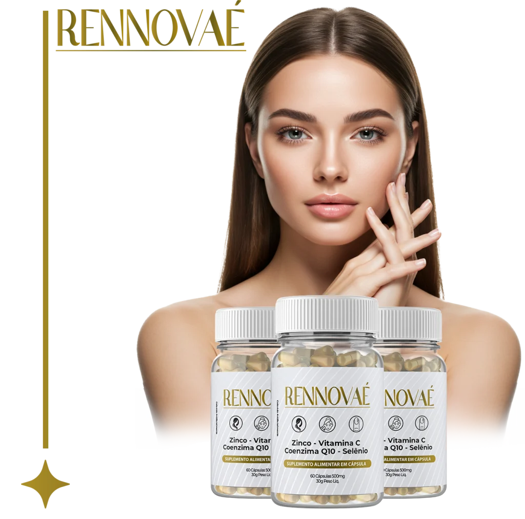 Rennovaé combina 7 nutrientes essenciais numa única solução nutracêutica, resultado de pesquisa pioneira do Instituto Brasileiro de Dermatologia e Nutrição (IBDN) e da USP. Descubra agora os benefícios exclusivos deste protocolo e veja por que milhares de mulheres já estão renovando cabelos, pele e unha.